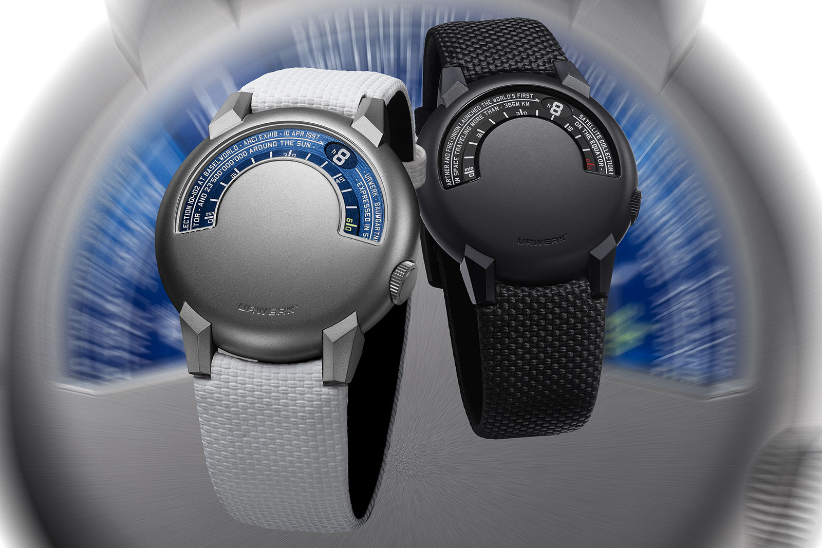 The complication remains a wandering hours but the display now includes script relating to the history of the UR-102 as well as the distance travelled by the Earth around the Sun since the model was launched in 1997.